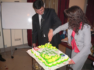 Право поделить праздничный торт предоставлено Президенту КСО Глебу Бахареву и Советнику КСО по Сибирскому региону Елене Леонидовой